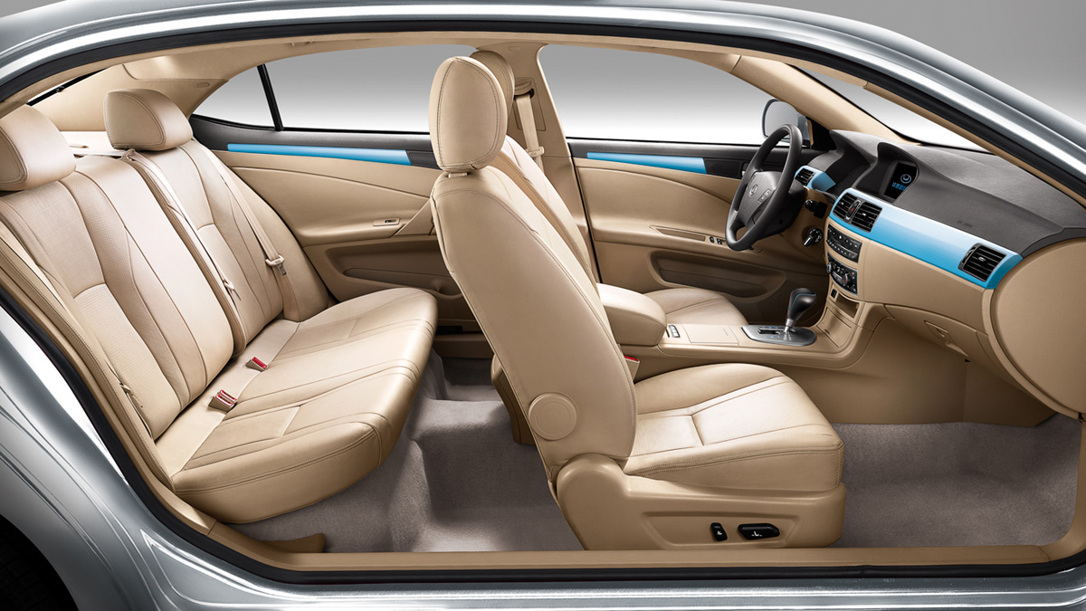 路盛S5 iEV230纯电动汽车前脸采用了德国主流车型的设计元素,采用大面积进气格栅设计,整车气质优雅,彰显尊贵;前保险杠与中网巧妙融为一体,提升内在安全的同时给人以尊贵、沉稳的视觉感受;凸起式导流槽的设计使整车线条更加优美,同时增加引擎罩的刚性,更加安全。