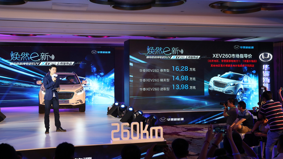 - 24.98-27.28万 国内首款纯电动SUV华泰XEV260上市央视网 2016-06-30