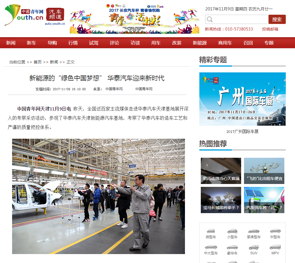 [中国青年网] 新能源的“绿色中国梦想” 华泰汽车迎来新时代