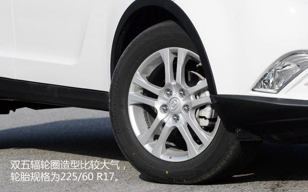 车身侧面造型紧凑,倾斜角度很大的A柱也增添了几分时尚跨界的感觉。大多数自主品牌车型的前后悬设计都比较长,导致车侧看起来很不协调,而新圣达菲在这方面做的就比较好。