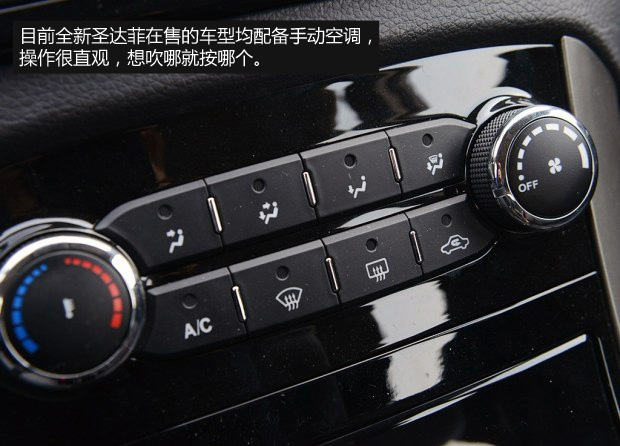 全新圣达菲车内的做工还是比较令人满意的。中控台顶部全部使用硬塑料材质,纹路处理得比较细腻,没有什么廉价的感觉。中控面板做工不错,接缝均匀,按键的手感也值得肯定。